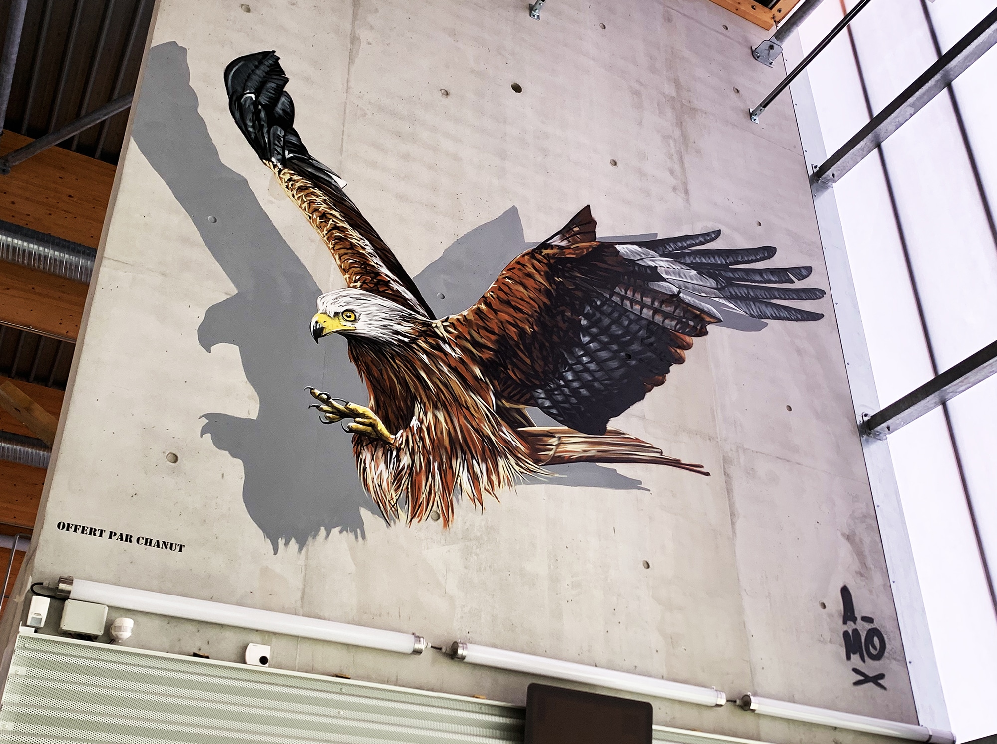 L’idée est ici de peindre des animaux emblématiques que l’on trouve dans la région : le lynx, le milan royal et la belette.